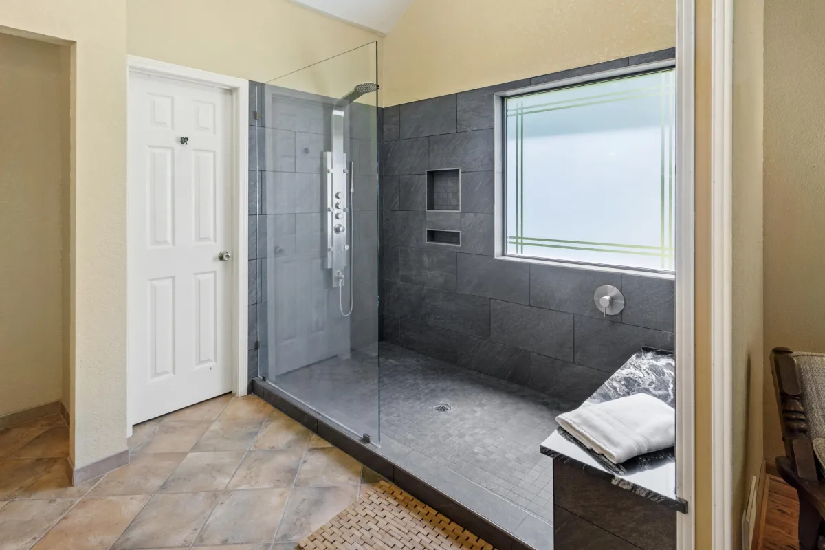 The primary suite is a true retreat, boasting a large room with high ceilings and a luxurious, upgraded walk-in shower. The split floor plan ensures privacy, with the two additional bedrooms and second full bathroom located on the opposite side of the home, making it perfect for hosting guests.